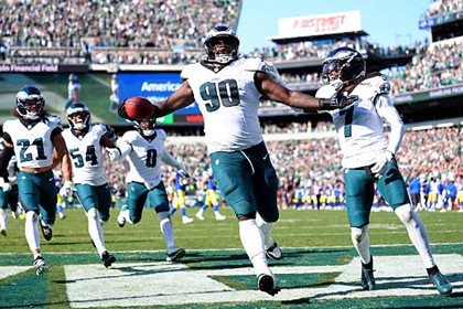 イーグルスは 4Q終了と同時にDTデービスが逆転FGをブロックして失点を阻止し、61yリターンTDを決めて逃げ切り、開幕 3連勝した。