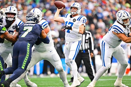 コルツは 44歳のQBリバースが現役復帰してシーホークス戦に先発し、TDパスを決めたが、2点差で惜しくも敗れた。